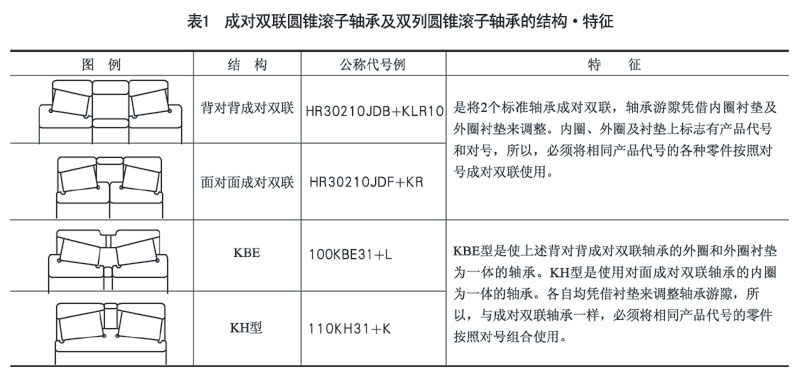 成對(duì)雙聯(lián)圓錐滾子軸承及雙列圓錐滾子軸承的結(jié)構(gòu)、特征